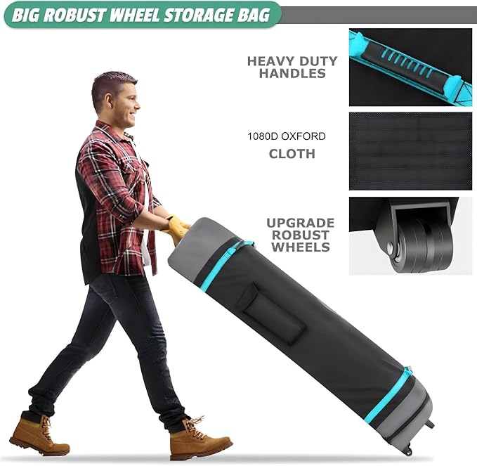 - [Portable Wheeled Bag, Versatile Applications]We provide a solid and tear-resistant 1080D Oxford fabric wheeled bag capable of carrying the 10x15 heavy duty Canopy, weighing up to 85 pounds. It features three large standing wheels and reinforced handles for easy mobility and transportation. The canopy is perfect for parties, weddings, barbecues, trade shows, sports events, disaster relief, or any outdoor activities.