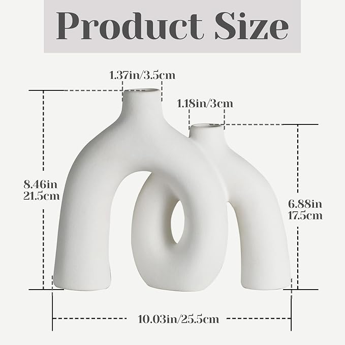 - SIZE & SET DETAILS Includes one white vase: Conjoined Size 10” × Heights 8.5" & 6.9". fits most stems. Boho-chic proportions ideal for shelves or tabletops.