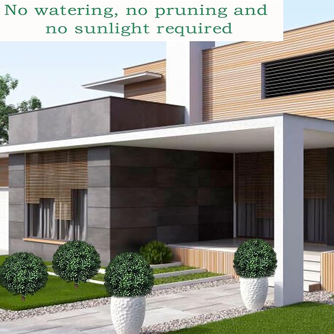 - 🌿UV Resistant Faux Boxwood Ball:This artificial topiary ball tree is made from durable, UV-resistant PE material, so it stays bright and won't fade, even in strong sunlight or rain. It's built to handle all kinds of weather.