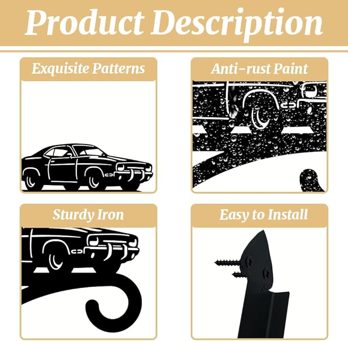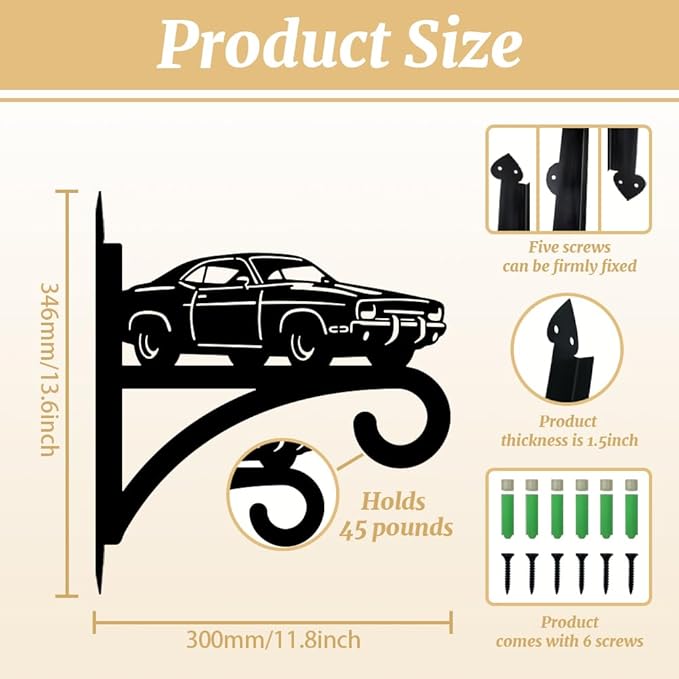 peacoblue Iron Plant Hangers Hooks for Outdoor Indoor Hanging Plants Flower Fern Pots Lantern Bird Feeder,11.8"x13.6" Weather Resistant Metal Wall Holder for Porch Garden Farmhouse(Retro Car)