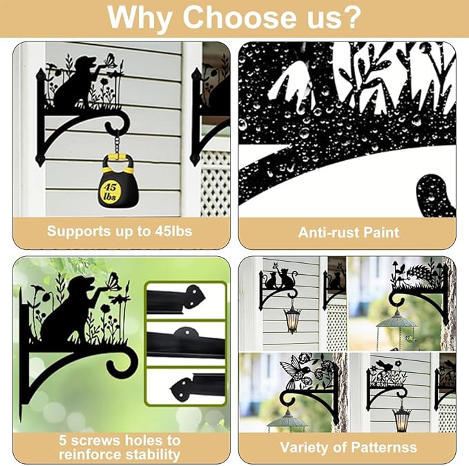 - ⚘Super Sturdy with a 45lbs Load-bearing: Our plants hangers are made of high quality iron with a special coating and max load 45lbs, weather resistant and rust resistant
