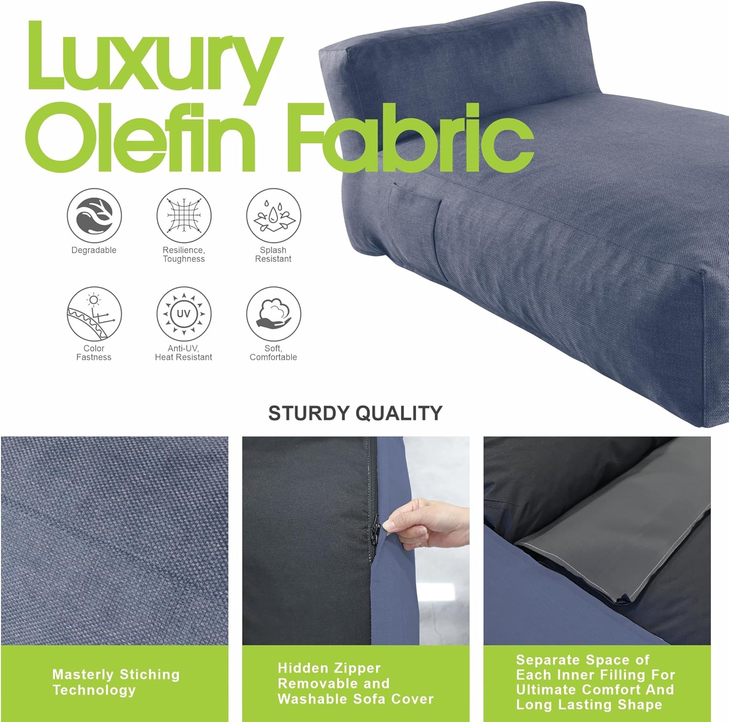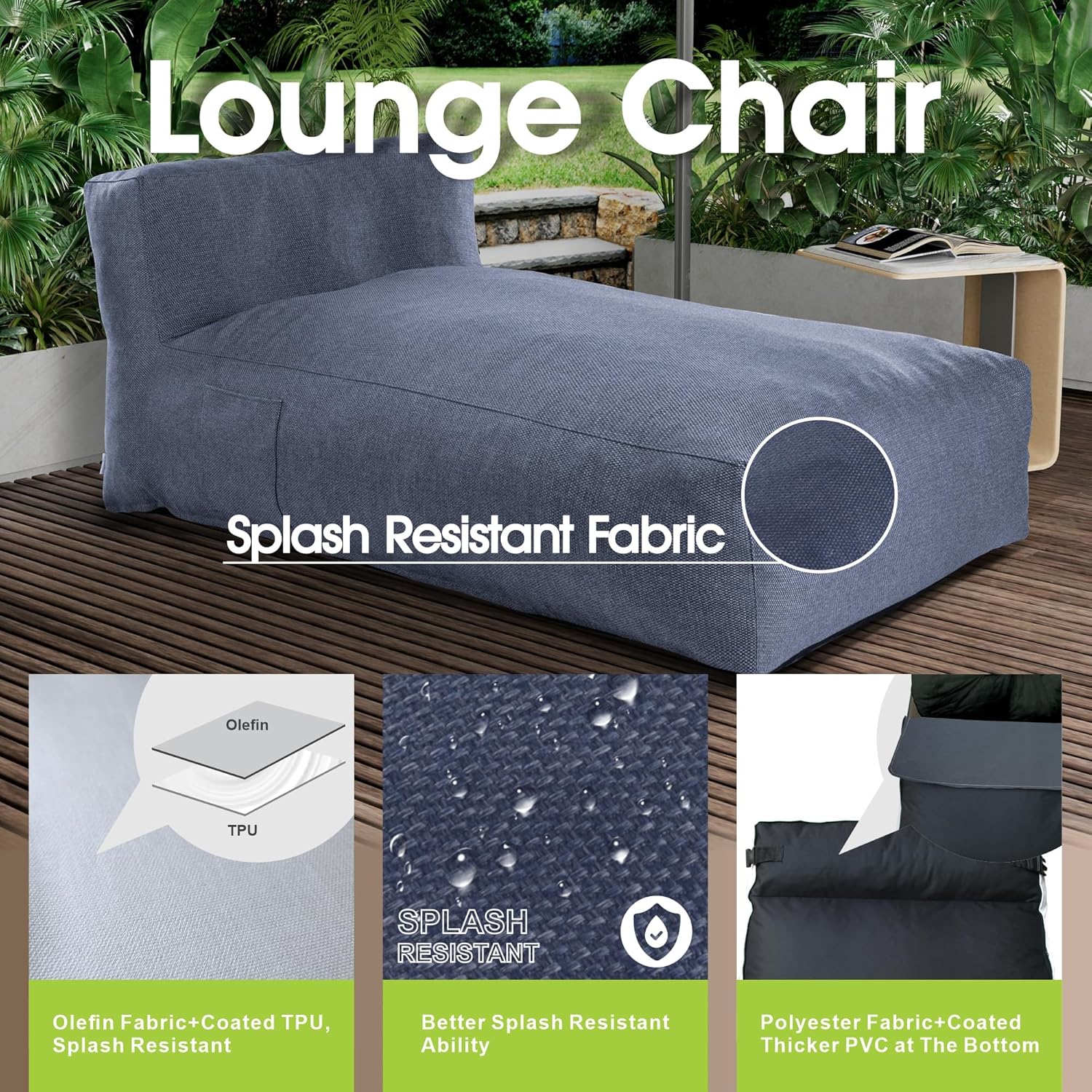 Outdoor Bean Bag Lounger Chair, Big Comfy Outdoor Daybed for Sunbathing and Tanning - Water-Resistant Patio Chaise and Pool Sun Lounger Furniture for Beach Deck (Denim Blue)