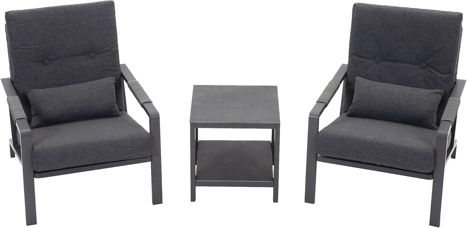 - Modern Style & Easy Maintenance:Featuring a sleek grey finish and outdoor conversation set design, this bistro set adds a stylish touch to any patio. Removable cushion covers make cleaning simple and convenient.