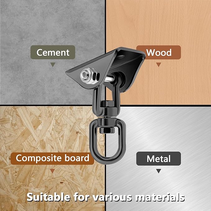 - Widely Used in Wood and Concrete: Our swing hardware provides 2 screws for wood and 2 expansion bolt for concrete. Heavy duty hammock hanging kit for ceiling, punching bag, porch swing, hammock, swing chair, ring, yoga swing, boxing equipment, hammocks, chairs, beds, baskets, furniture, swings, hammock hanging kit, hammock chair hanging kit, porch swing hanging kit, hanging chair hardware.