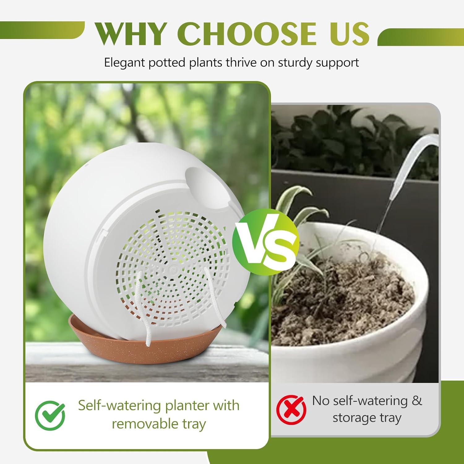 - 【Self-Watering Hanging Flower Pots with Removable Saucer】The innovative recessed design under each hanging indoor planter maintains optimal water levels for your plants and serves as a reservoir for consistent watering. This feature eliminates the hassle of watering plants while you're away on business trips or traveling, thanks to our hanging plant pot.