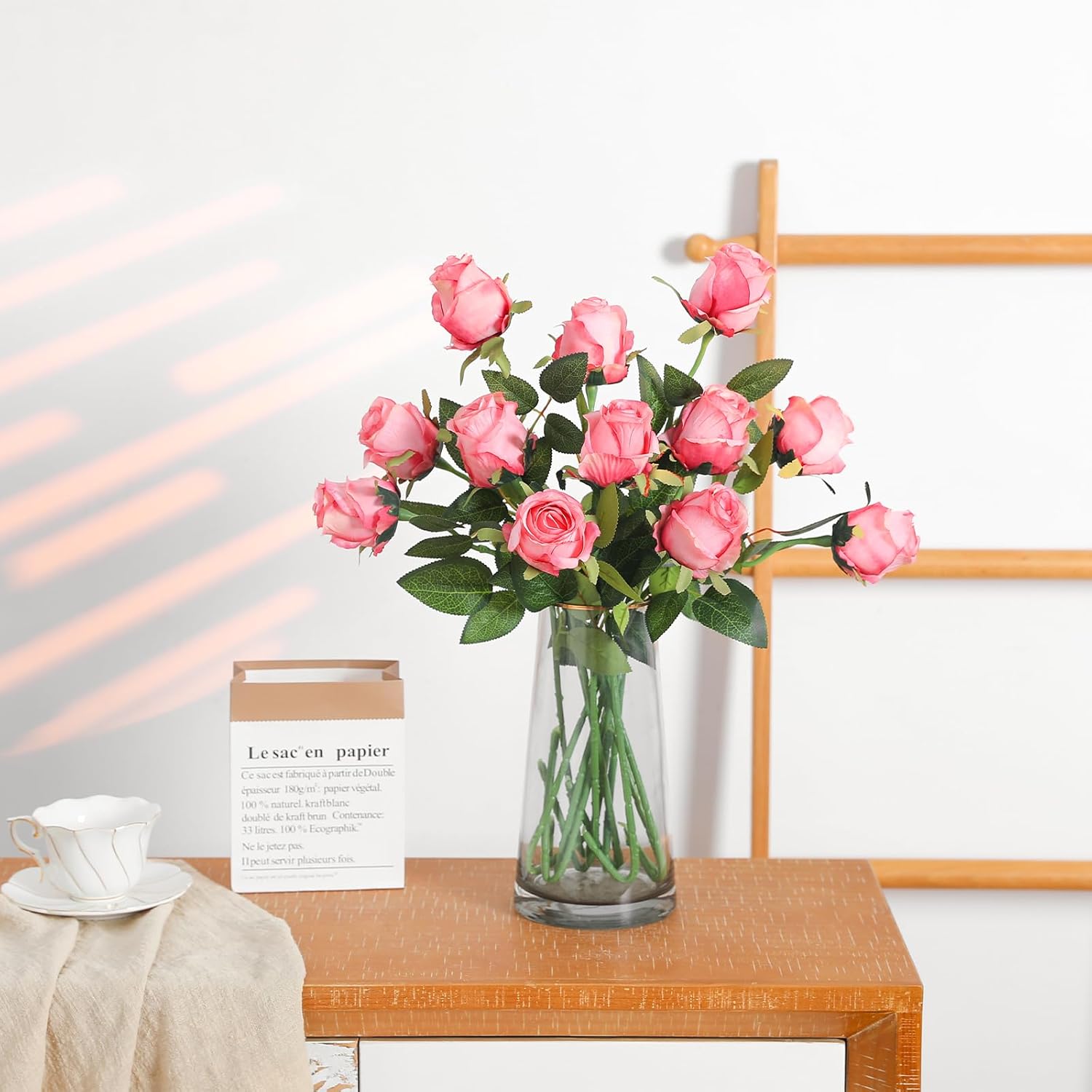 - 【Realistic Floral Design】-Each set includes 12 lifelike roses with 2.3" silk blooms and 18.1" trimmable stems for customized arrangements. Bendable stems mimic natural growth patterns, ideal for adjusting height in vases or creating cascading centerpieces.