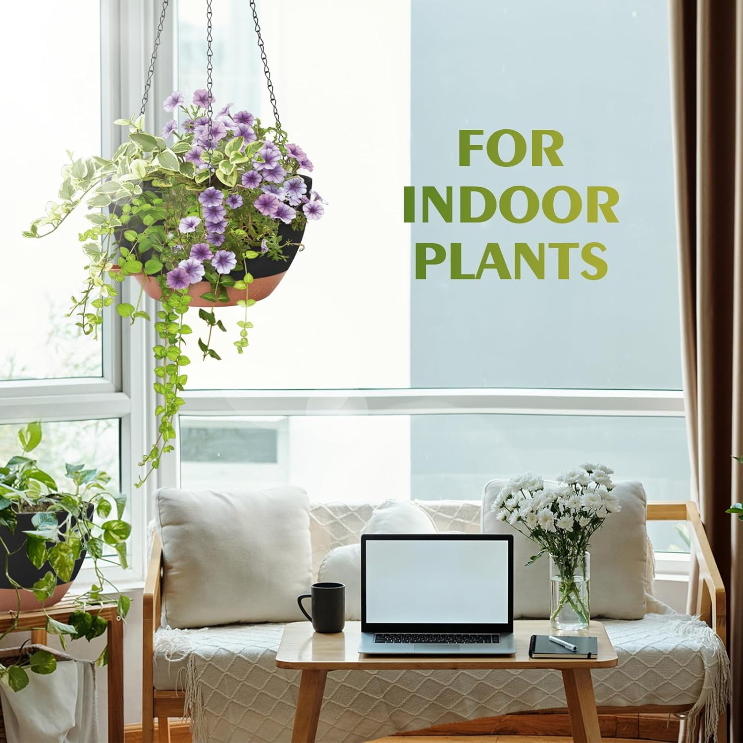 - 【Self-Watering Hanging Flower Pots with Removable Saucer】The innovative recessed design under each hanging indoor planter maintains optimal water levels for your plants and serves as a reservoir for consistent watering. This feature eliminates the hassle of watering plants while you're away on business trips or traveling, thanks to our hanging plant pot.