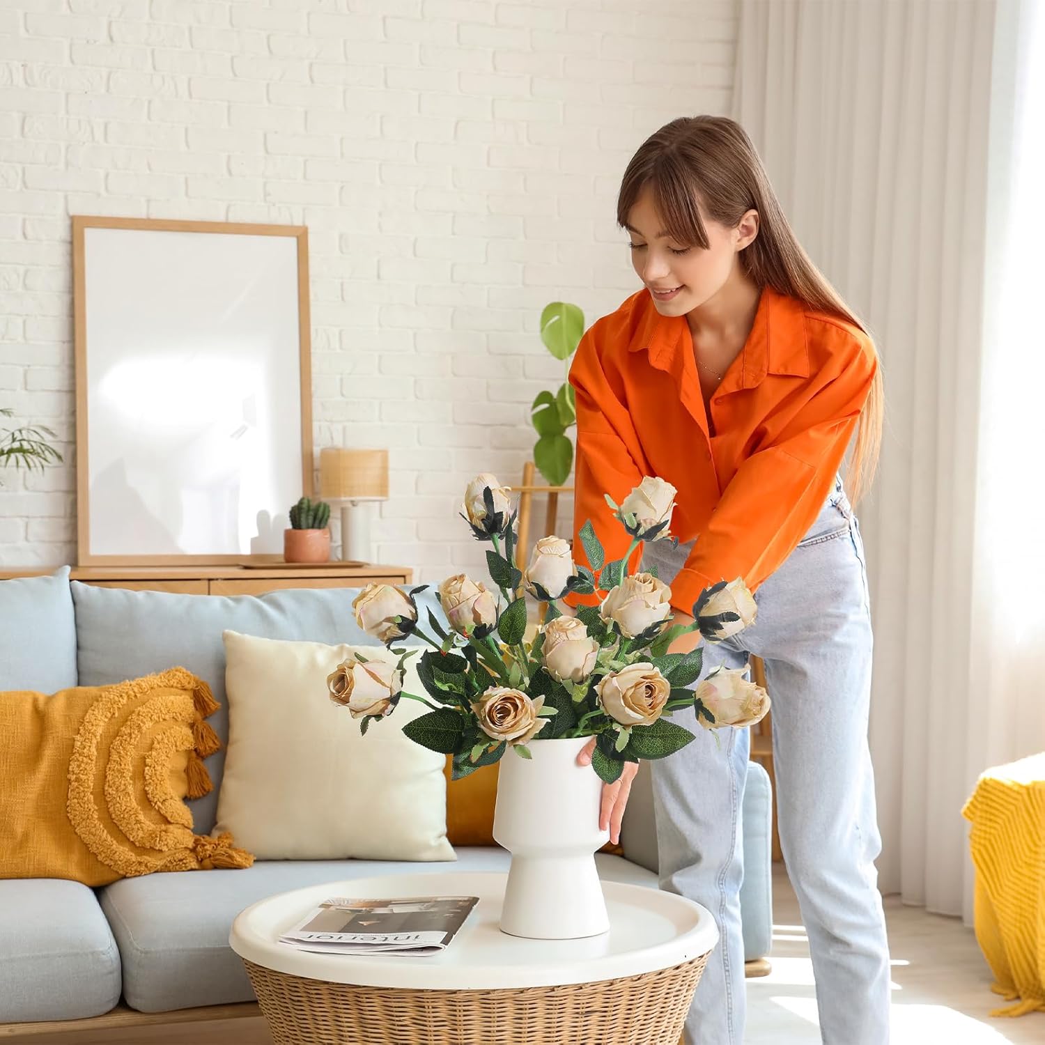 - 【Premium Material】-Crafted with delicate silk petals and flexible plastic stems, these artificial roses offer fade-resistant colors and a luxe texture, and the silk-and-plastic hybrid design outperforms paper/fabric alternatives in durability.