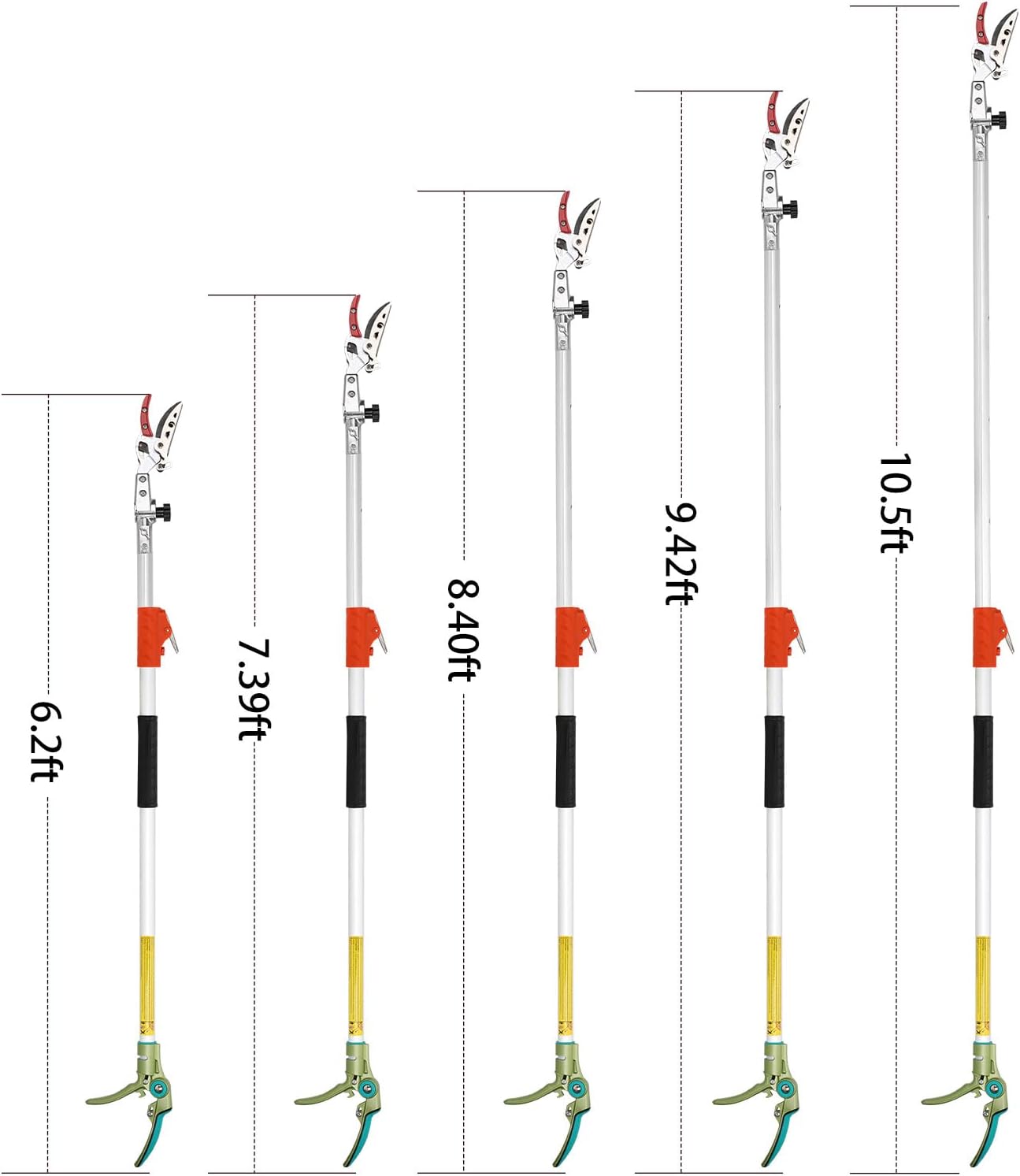 - 【Extendable Reach for High Branches】Effortlessly trim tall trees and hedges with the LeafLux Tree Pruner. The telescopic pole extends from 6.23-10.5 feet, providing you with additional reach for cutting branches up to 10 feet high. Perfect for pruning climbing plants, trees, or hedges, this extendable pruner allows you to trim with ease and precision, making it an essential tool for keeping your garden neat and tidy.