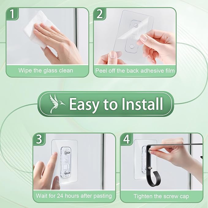- Quality of Hummingbird Feed Hook: Crafted from high-quality solid metal with an anti-rust coating, and fixed with a nut on a strong non-marking adhesive to prevent falling off, ensuring long-term use. Suitable for various smooth surfaces like glass, windows, mirrors, shower walls, tiles, etc., making it perfect for your built in bird window or one way bird feeders for window.