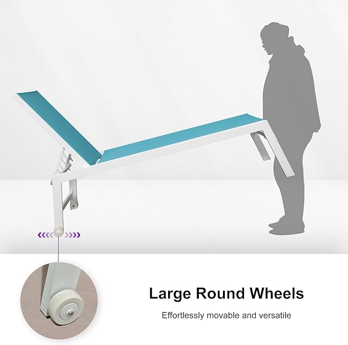 PURPLE LEAF Oversize Outdoor Chaise Lounge Set of 4 Outdoor White Aluminum Lounge Chairs with Side Table and Wheels Patio Lounge Chair for Yard Pool Deck, Turquoise