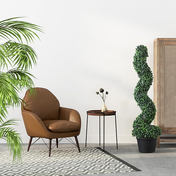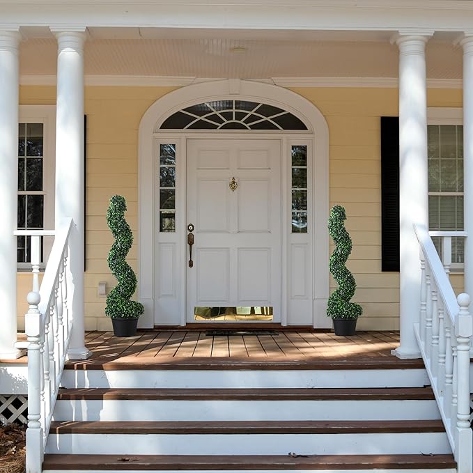 39 inchBoxwood Artificial Cedar Spiral Topiary Trees – Decorative Fake Greenery in Planter Pots for Front Porch, Outdoor Walkway, Entryway Decorating, Set of 2
