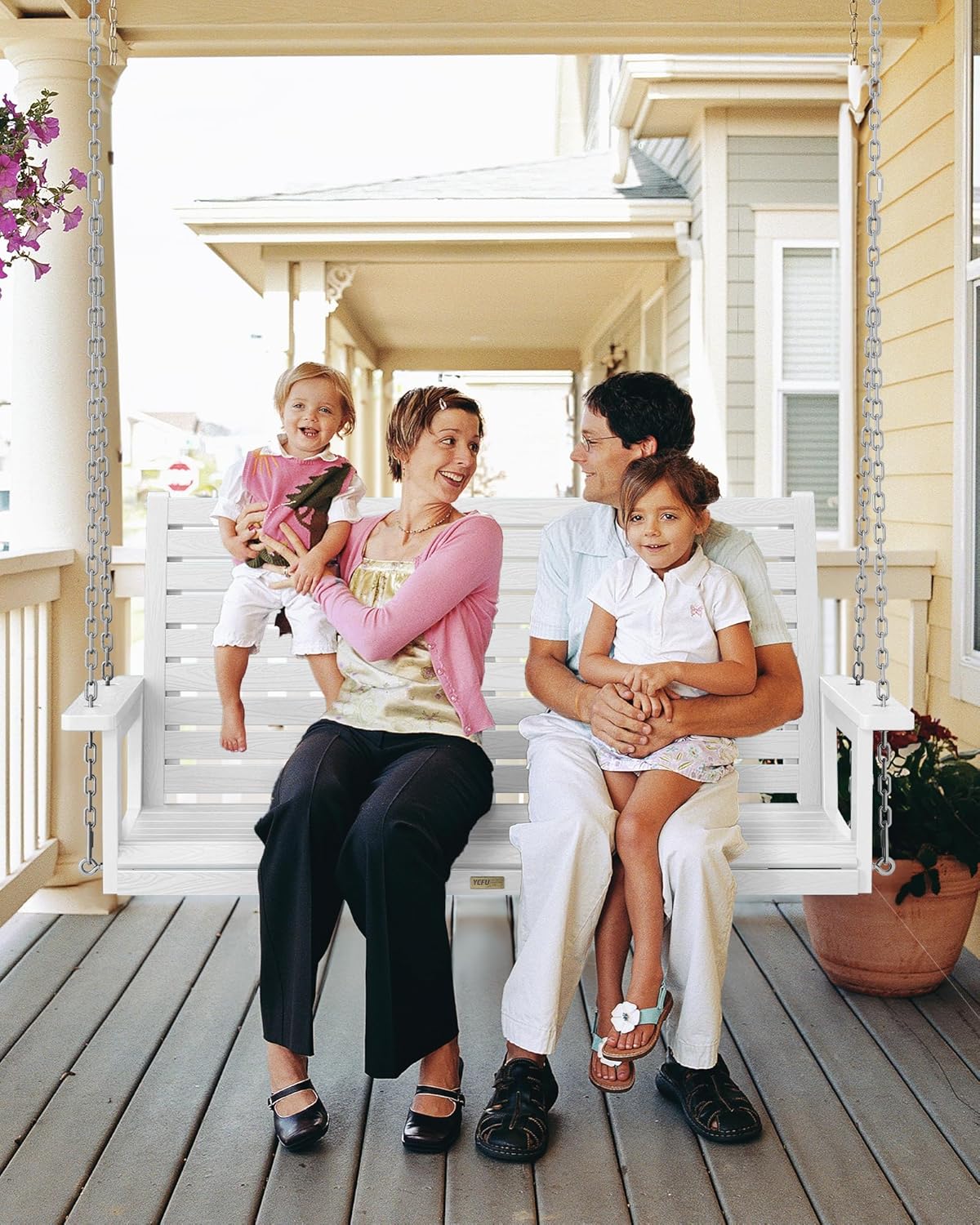YEFU Porch Swing, 2-Seat Outdoor Swing, Waterproof Hanging Porch Swings Chair, Weather Resistance Patio Swings,for Garden and Backyard,Composite Material,660LBS Weight Capacity,4FT,White