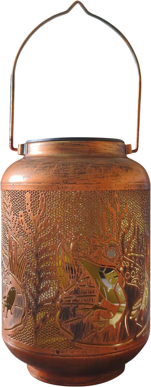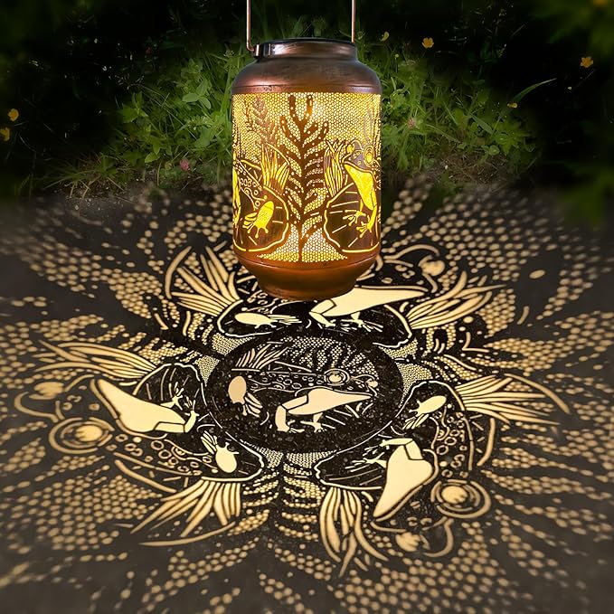 Frog Outdoor Solar Waterproof Light Retro Wrought Iron Hollow LED Light, Waterproof Garden Decorative Light, with Projection Function, Suitable for Balconies, Lawns, and Courtyard Landscapes.