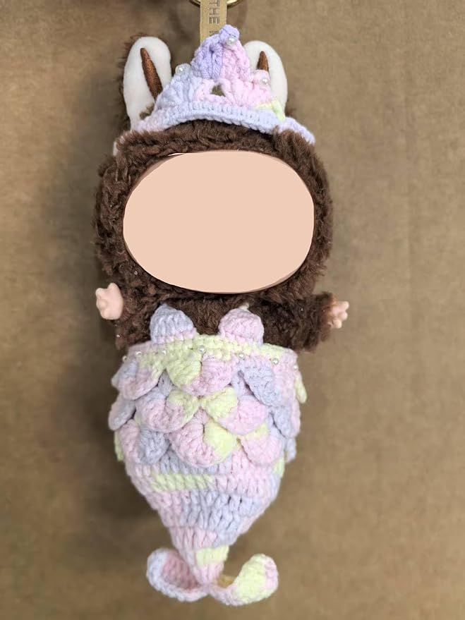 Clothes for Labubu Doll,Clothes for Doll Accessories,Hand-woven Bikini Mermaid Crochet Skirt Set,Summer Mermaid Costume Outfit Suitable for Labubu15&17cm,Dress-Up Accessories for Labubu Doll (color04)