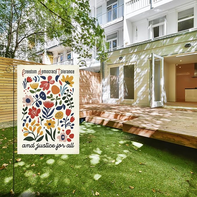 Social Justice Encourage Garden Flag Freedom Democracy Tolerance And Justice for All Decorations Small Double Sided Burlap art Stained Glass Style Garden Flags 12 x 18 Inch for Outside