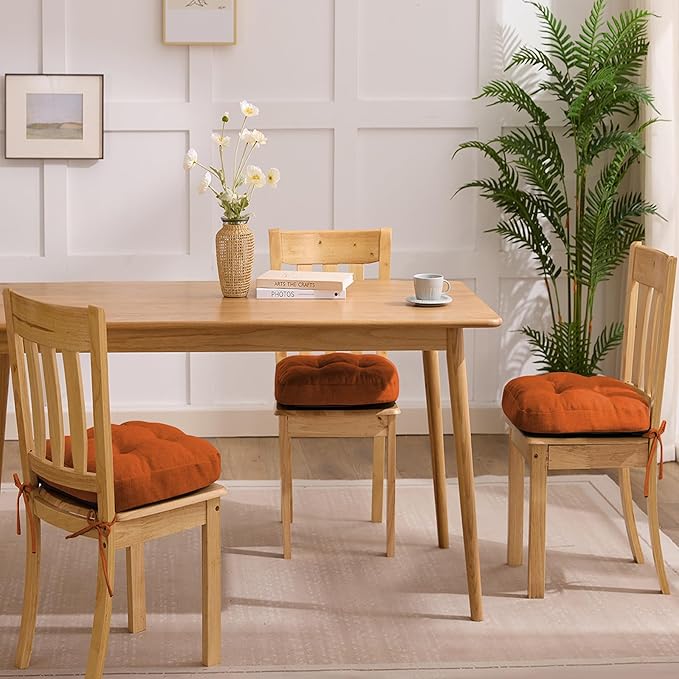 Chair Cushions for Dining Chairs, Dining Chair Cushions, Tufted Indoor Chair Pads with Ties & Non Slip Backing, Seat Cushions for Kitchen Chairs 16.5” x 16.5” x 3.5”, Set of 4, Orange