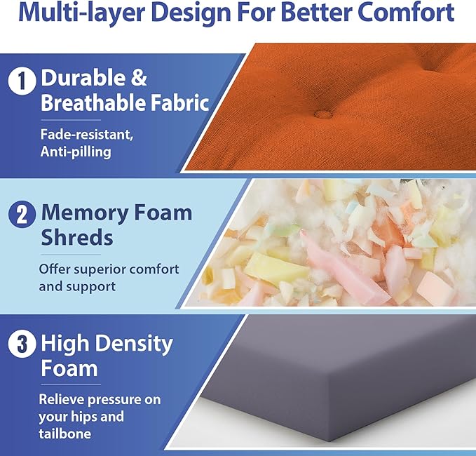 - 【Premium Memory Foam Support】: Designed with high-density memory foam for long-lasting support and comfort, our dining chair cushion offers superior comfort and support, relieving pressure on your hips and tailbone during extended seating