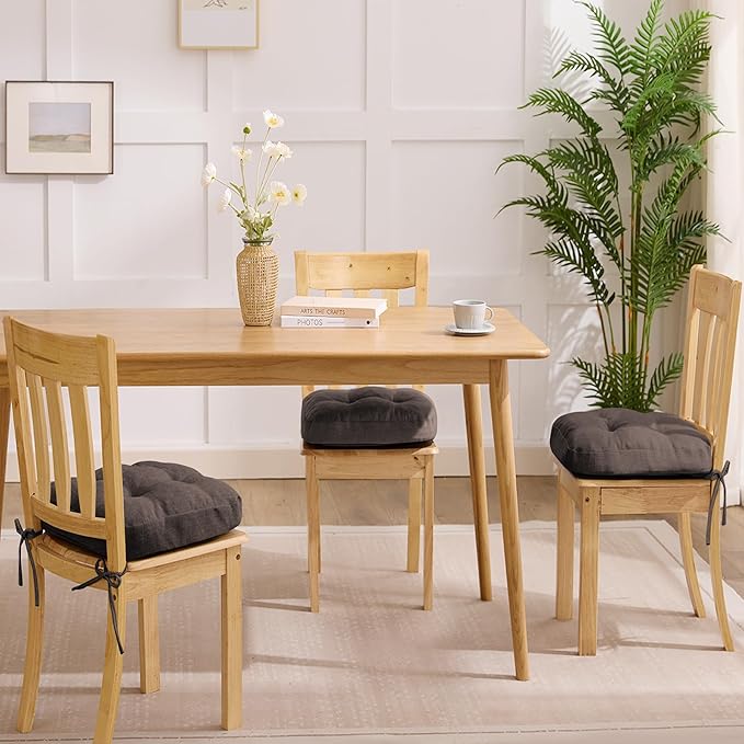 Chair Cushions for Dining Chairs, Dining Chair Cushions, Tufted Indoor Chair Pads with Ties & Non Slip Backing, Seat Cushions for Kitchen Chairs 16.5” x 16.5” x 3.5”, Set of 6, Brown