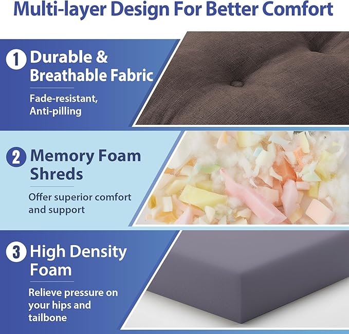 - 【Premium Memory Foam Support】: Designed with high-density memory foam for long-lasting support and comfort, our dining chair cushion offers superior comfort and support, relieving pressure on your hips and tailbone during extended seating