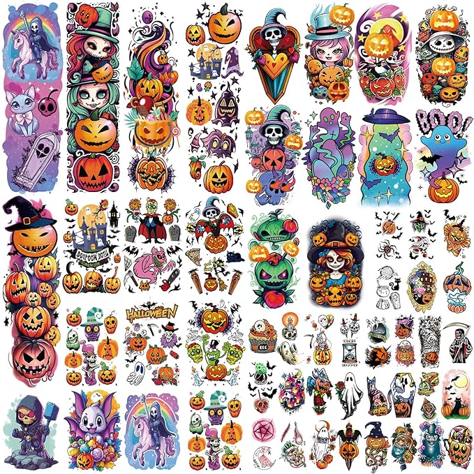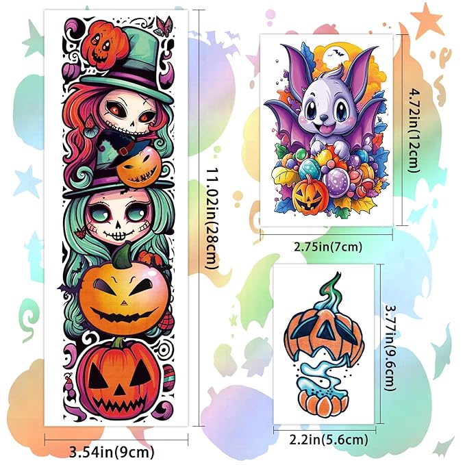 - Kid-Friendly Designs: Colorful and fun Halloween tattoos perfect for children's parties, trick-or-treating, and costume enhancement without being too scary