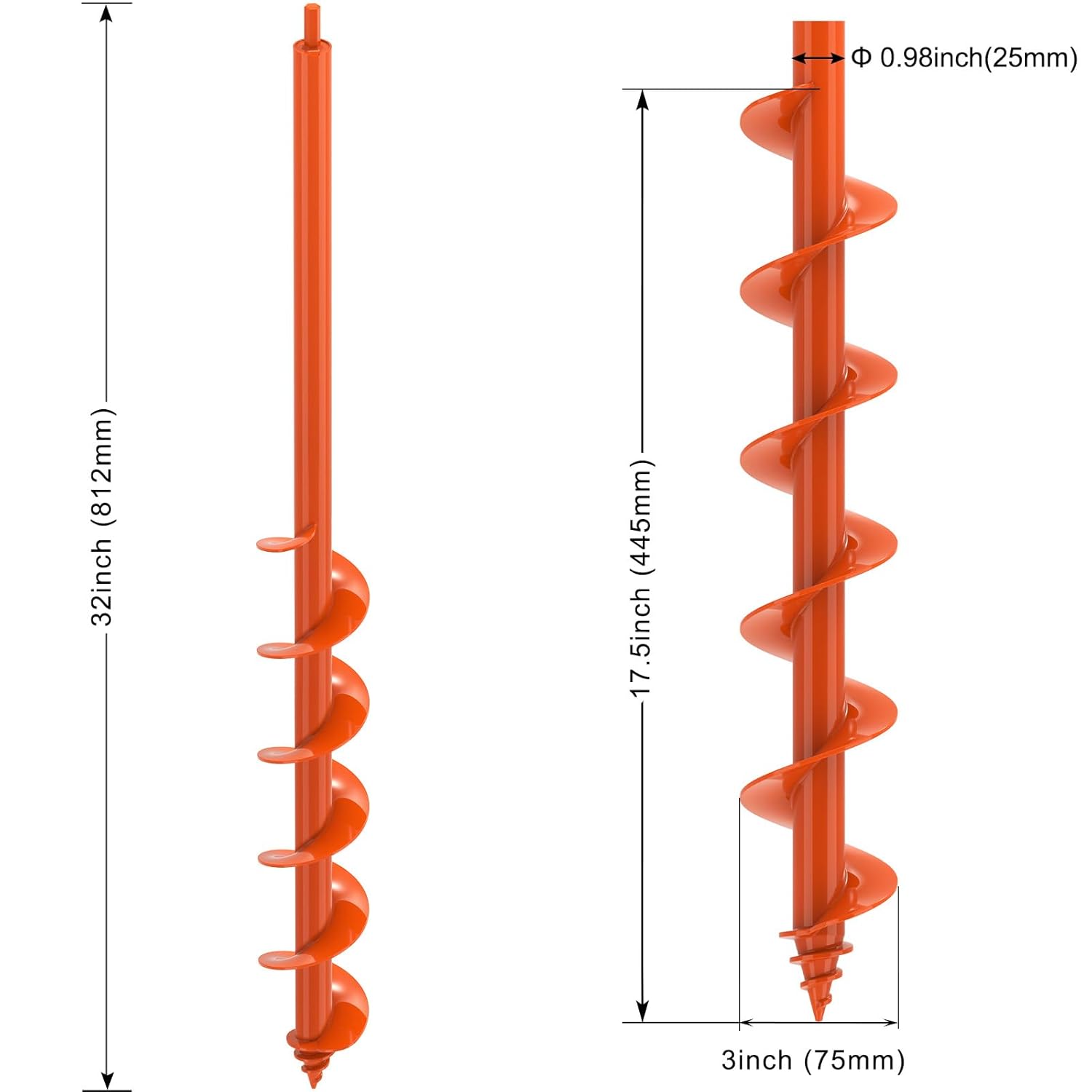 - Time-Saving Auger Drill Bit: Our auger post hole digger is designed for safe use when planting and features a smooth, rounded spiral. at 32'' long provides enough leverage to dig deep underground without bending or squatting, reducing strain on your hands and back.