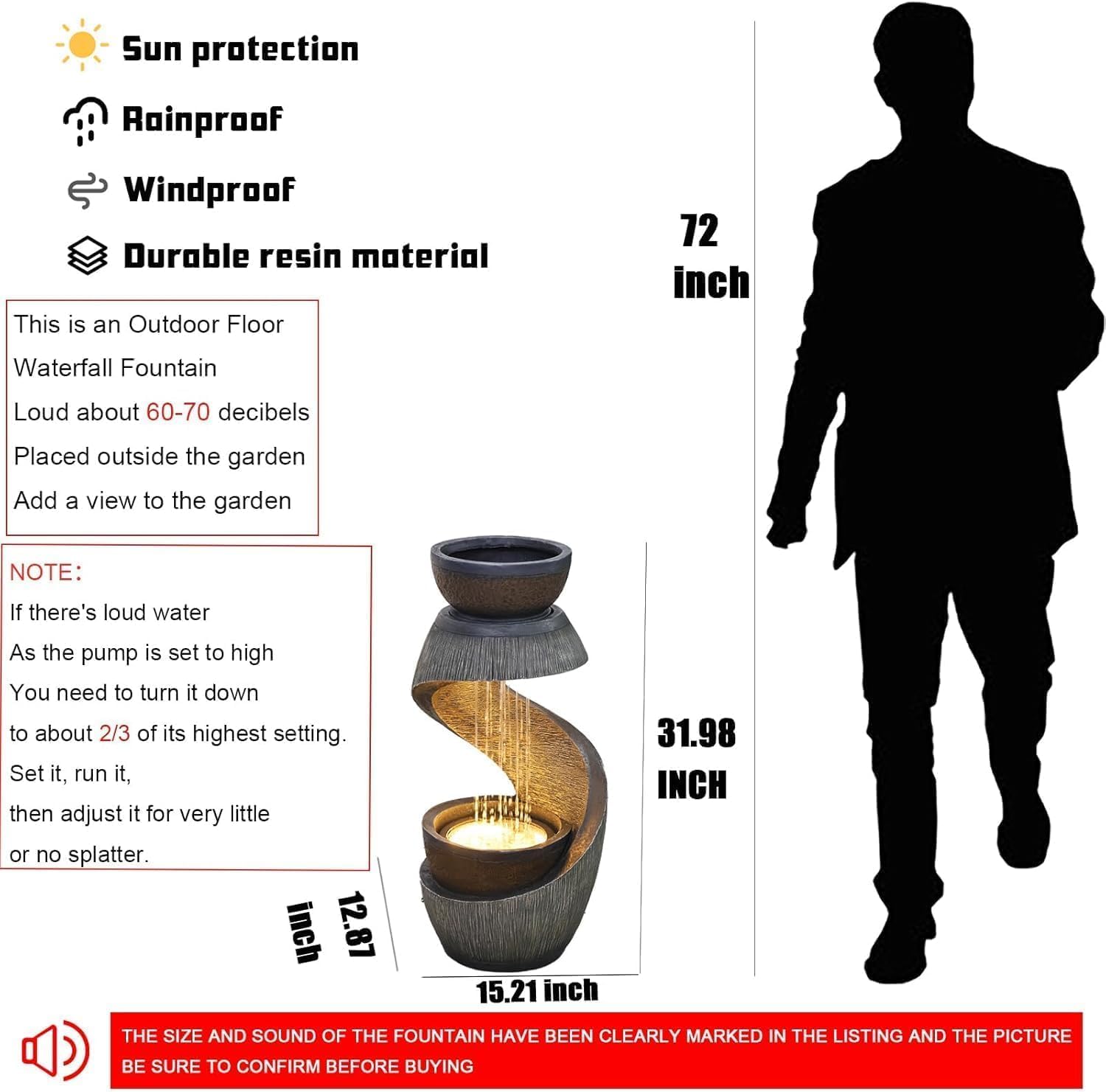 - Ideal Size & Gift-Worthy Design Standing 31.9" tall, this water fountain 35 inch alternative fits well in compact spaces while still standing out. Its soothing waterfall sound, modern aesthetics, and planter top make it an excellent gift for housewarmings, garden lovers, or home decor upgrades.
