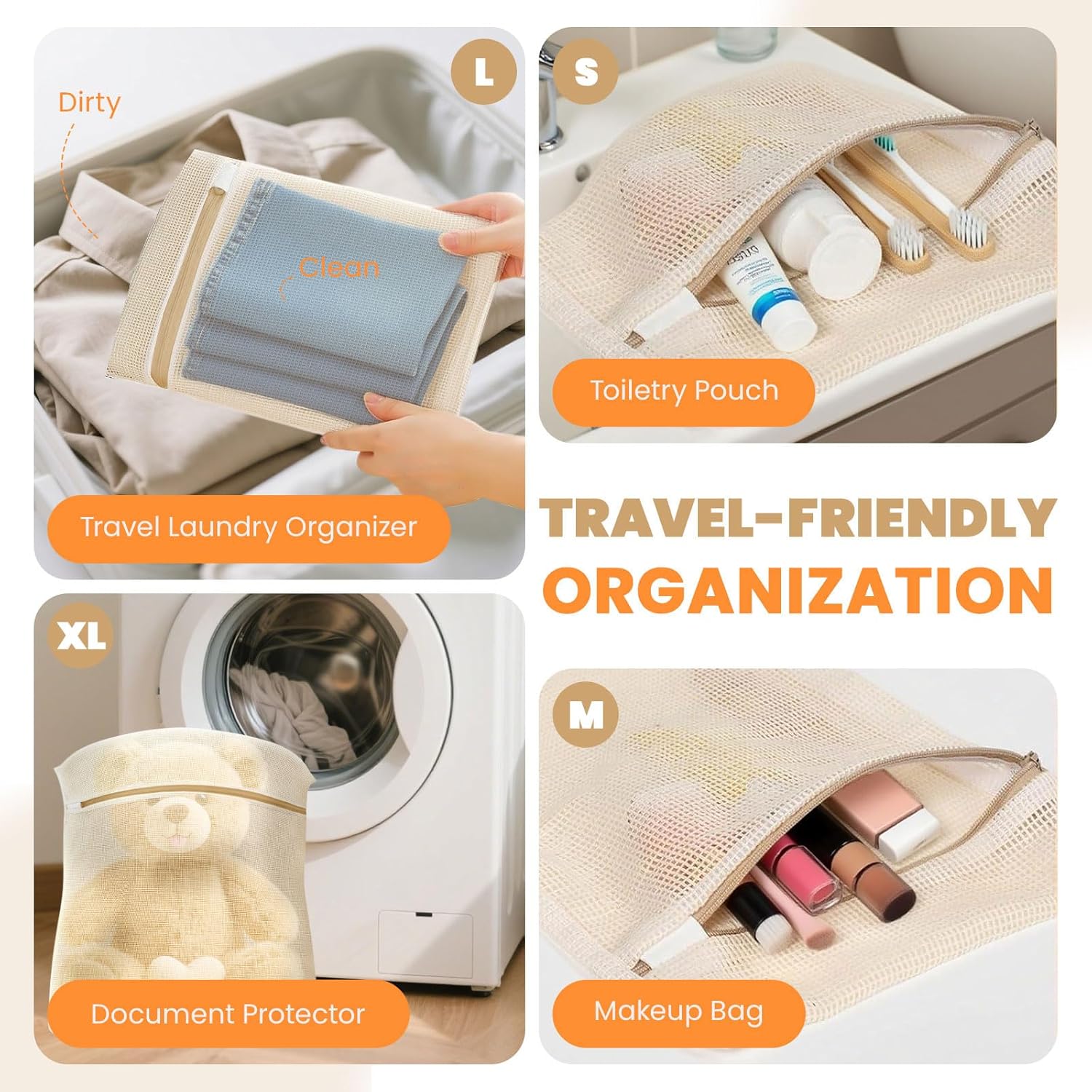- Multiuse Mesh Organization Bags:Beyond basic laundry protection,these mesh bags serve as travel dirty clothes organizer,make up bag,toiletry bag alternative,wet swimsuit carrier,toy washing bag,gym gear organizer,Christmas ornament storage,pet toy cleaner,stuffed animal dryer,document bag etc.