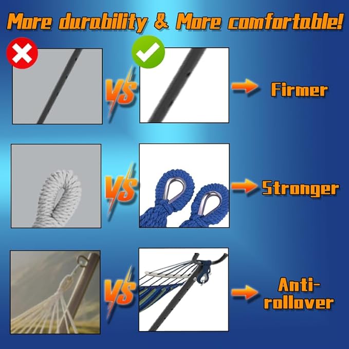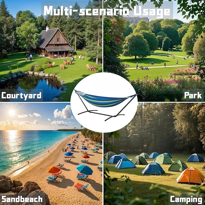 - 【Large Size & Weight-Bearing】 : ANAGOO hammock with stand adopts a reinforced design, double hammock maximum load capacity up to 500LBS, multiple people share no pressure.