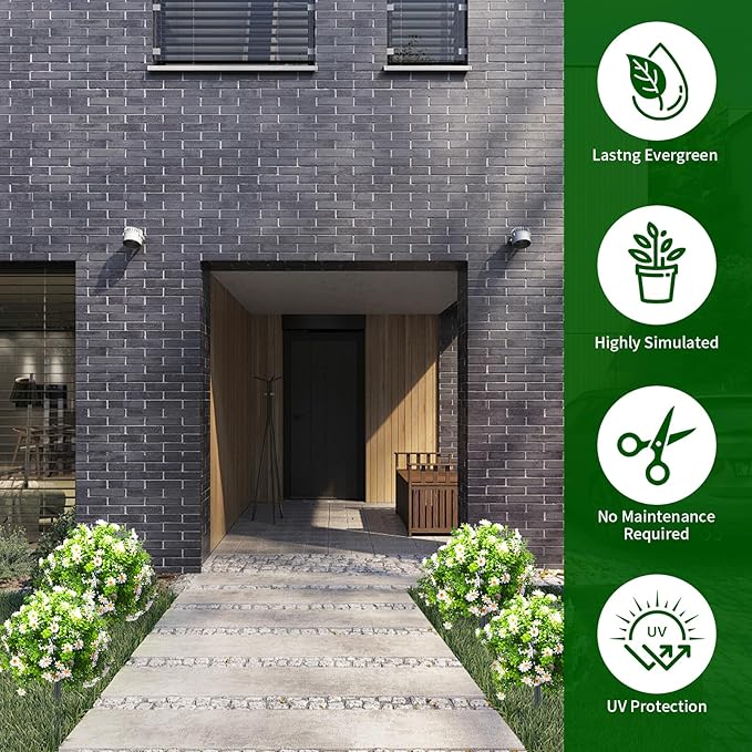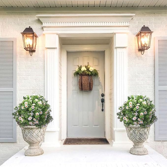 - Durable & UV Resistant – Crafted from premium silk and plastic, these faux plants are weatherproof and UV-protected, keeping their vivid colors and shape season after season, even under sun and rain.