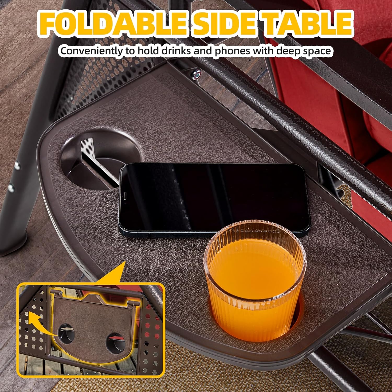 - Convenient Cup Holders & 750 lbs Weight Capacity: Enjoy afternoon tea on your patio swing with canopy! Two cup holders are conveniently placed on each side to keep drinks within reach. Crafted with a heavy-duty steel frame, this patio outdoor swing supports up to 750 lbs, comfortably seating 3 adults — making it the nice outdoor swing for family gatherings