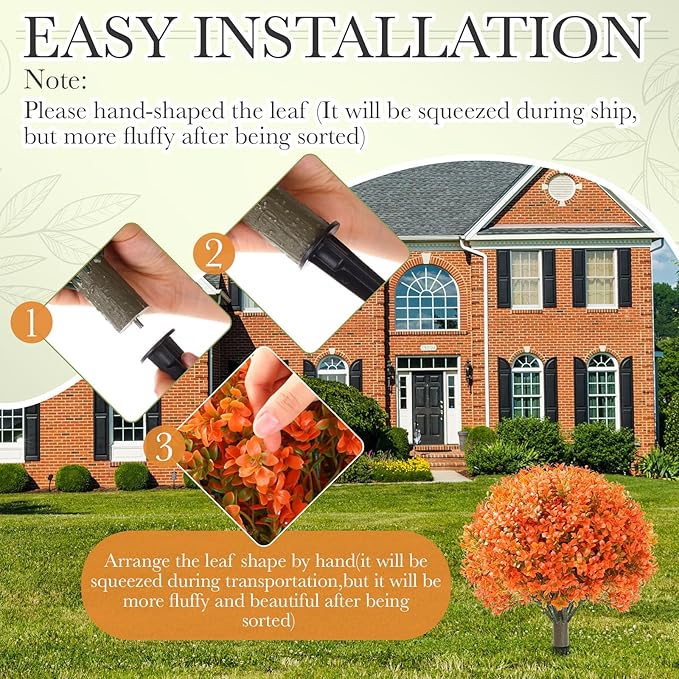 - Easy to Install & Shape: with built-in ground spikes for easy installation, these artificial fall plants can be placed in soil or pots; The flexible branches allow for easy reshaping, ensuring your Halloween decor or fall porch decor looks just how you want it