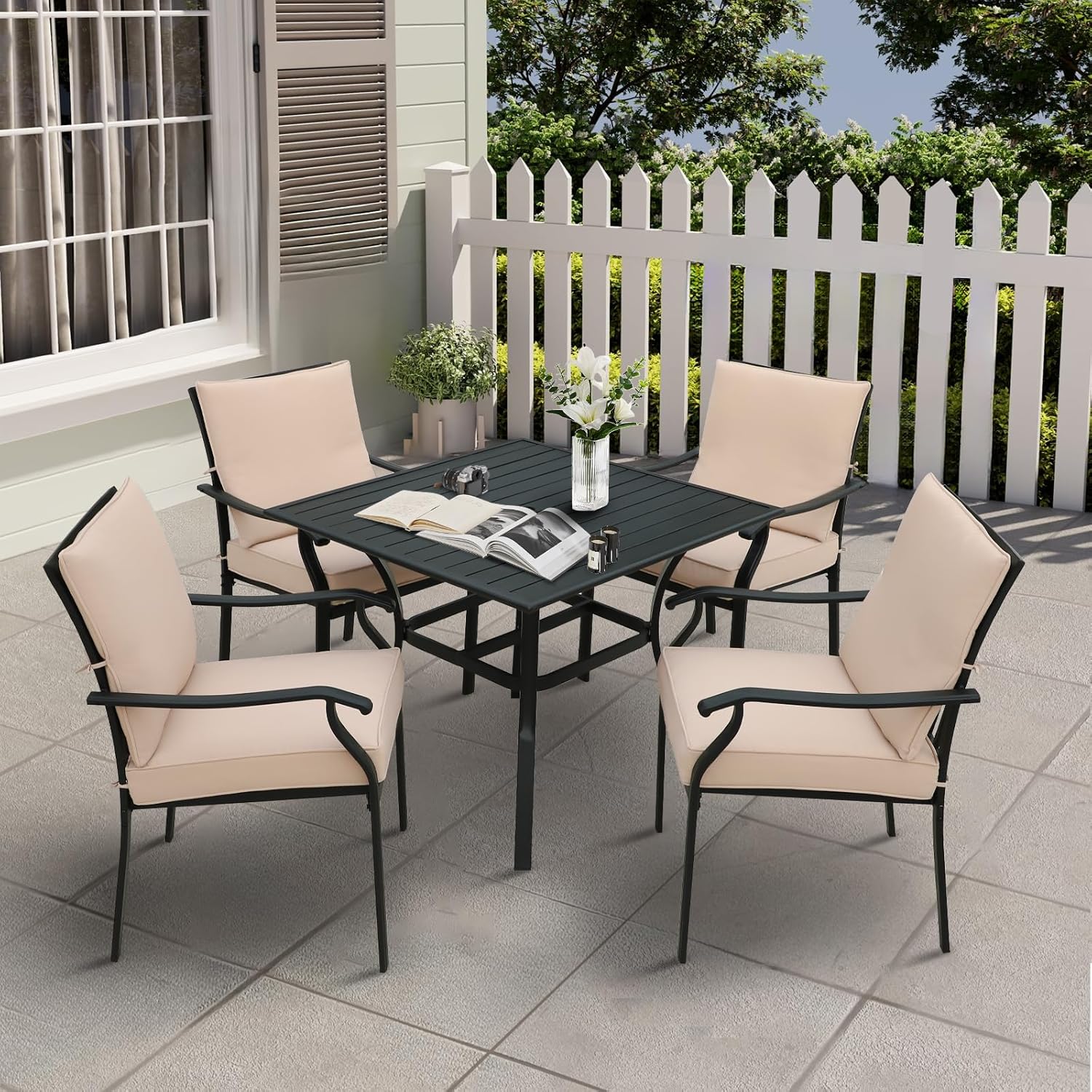 5-Piece Outdoor Patio Dining Set, Outdoor Metal Chairs & Square Metal Patio Table, All Weather Outdoor Furniture Dining Set for Patio, Balcony, Lawn, Garden, Backyard (1 Square Table+ 4 Chairs)