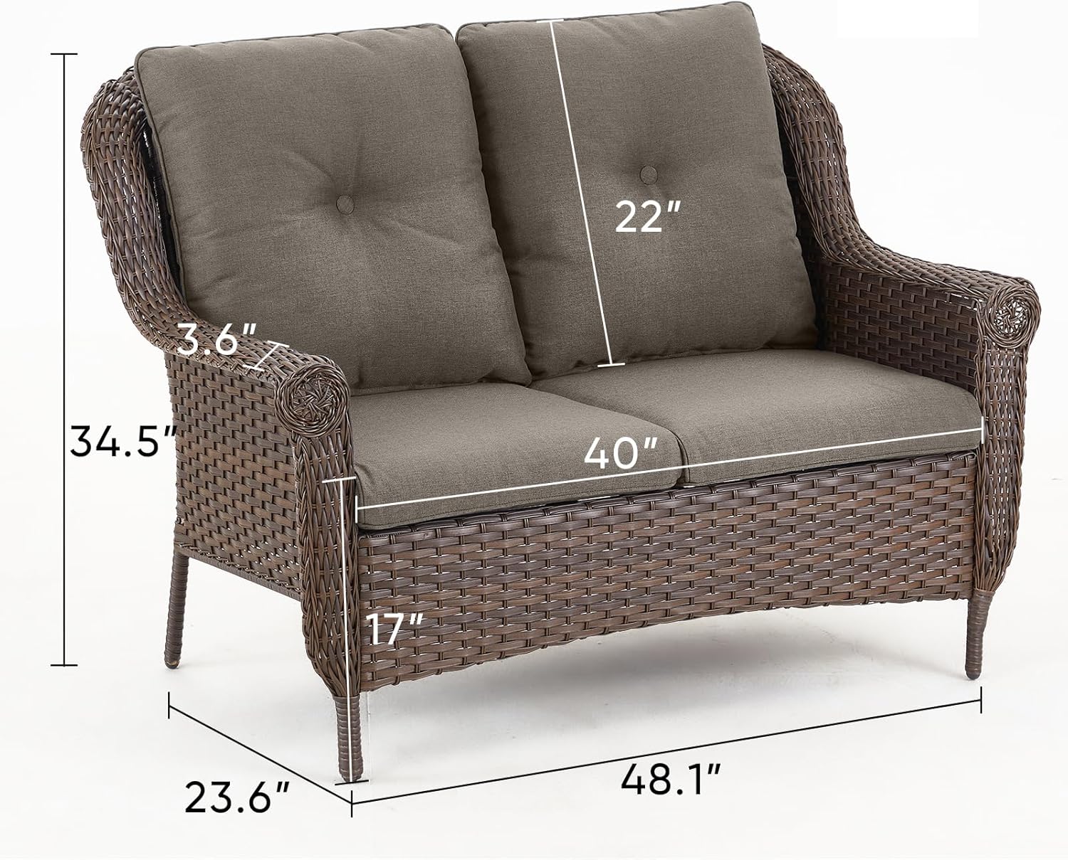 Patio Loveseat Outdoor Wicker Sofa - Heavy Duty All-Weather Brown Rattan 2-Person Sofas with High Back and Comfortable Thick Cushions for Garden Back Porch Poolside Apartment - Grey