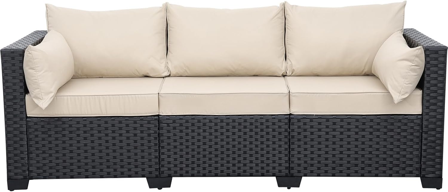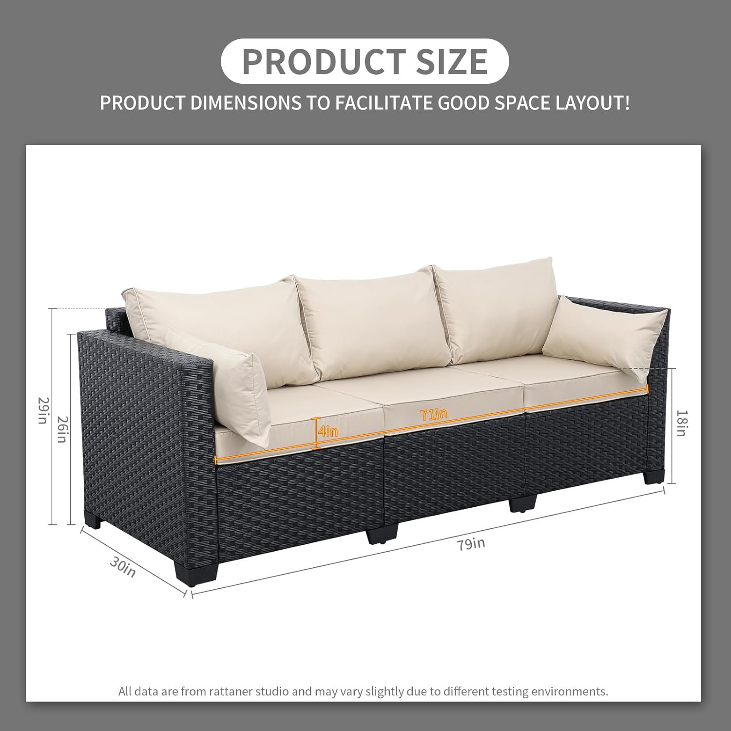 Rattaner Patio Furniture 3-seat Sofa Wicker Outdoor Furniture Outdoor Couch Deep Seat Hight Backrest Waterproof Cover Anti-Slip Cushions, Khaki