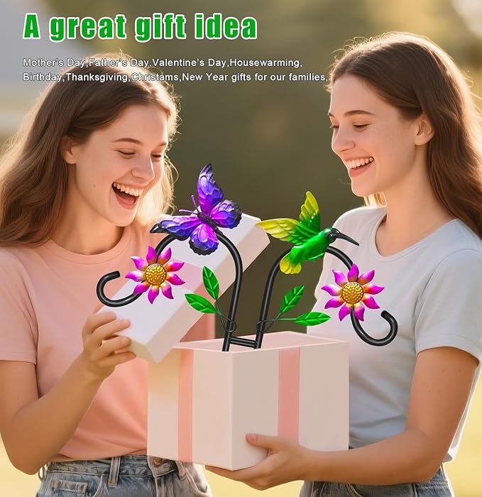 - Artistic Design: yeuago double shepherds hooks stand out with unique hummingbird, butterfly and flower motifs. The vivid and colorful designs add a touch of elegance and a fairytale - like charm to your outdoor space.