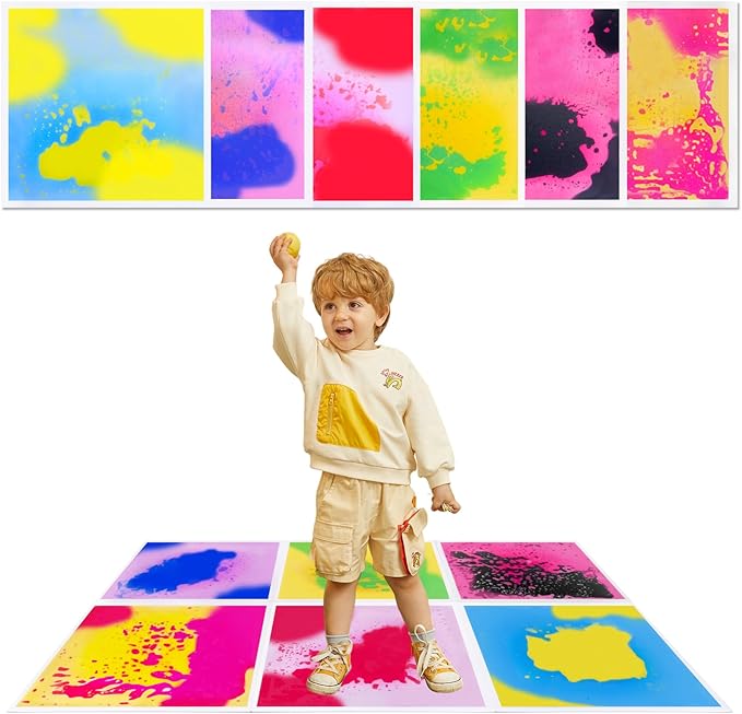 - Interactive Play with Liquid Tiles:Transform any space into an interactive playground using our 11.8x11.8in square floor liquid tiles! Featuring a unique gel-filled design, these colorful sensory tiles are perfect for children aged 3+ to explore and engage in sensory stimulation. Whether used as a liquid sensory mat or gel tiles, the smooth, flowing surface delivers endless fun and discovery