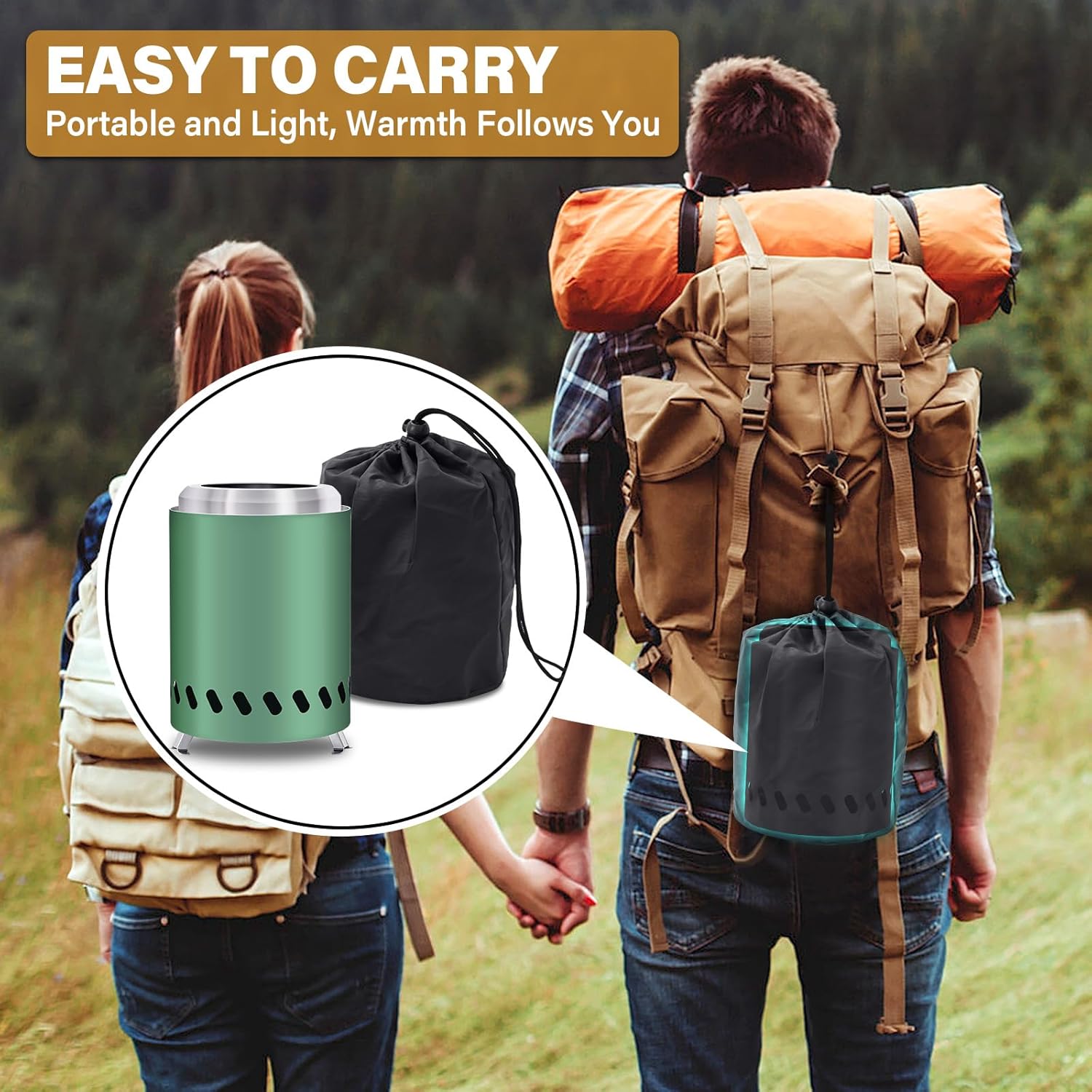 HGD 8.0 x 5.5 in Small Tabletop Fire Pit, Portable Mini Smokeless Table Top Firepit, Low Smoke Camping Stove for Outdoor & Patio, Fueled by Pellets or Wood, with Travel Bag, Stainless Steel, Green