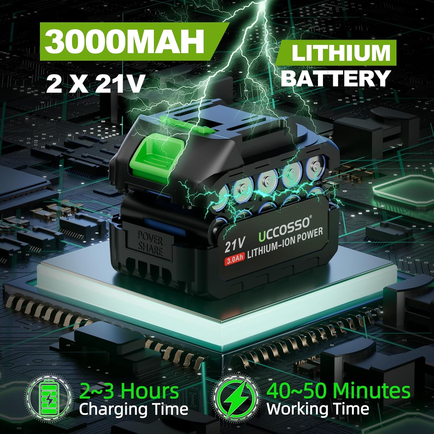 - 2-Pack 3000mAh High-Capacity Batteries – Long-Lasting Power: This battery operated pole saw comes with two 21V 3000mAh rechargeable batteries that offer 4–5 hours of working time on a full charge. Built-in safety features such as overload and temperature protection provide peace of mind for extended use.