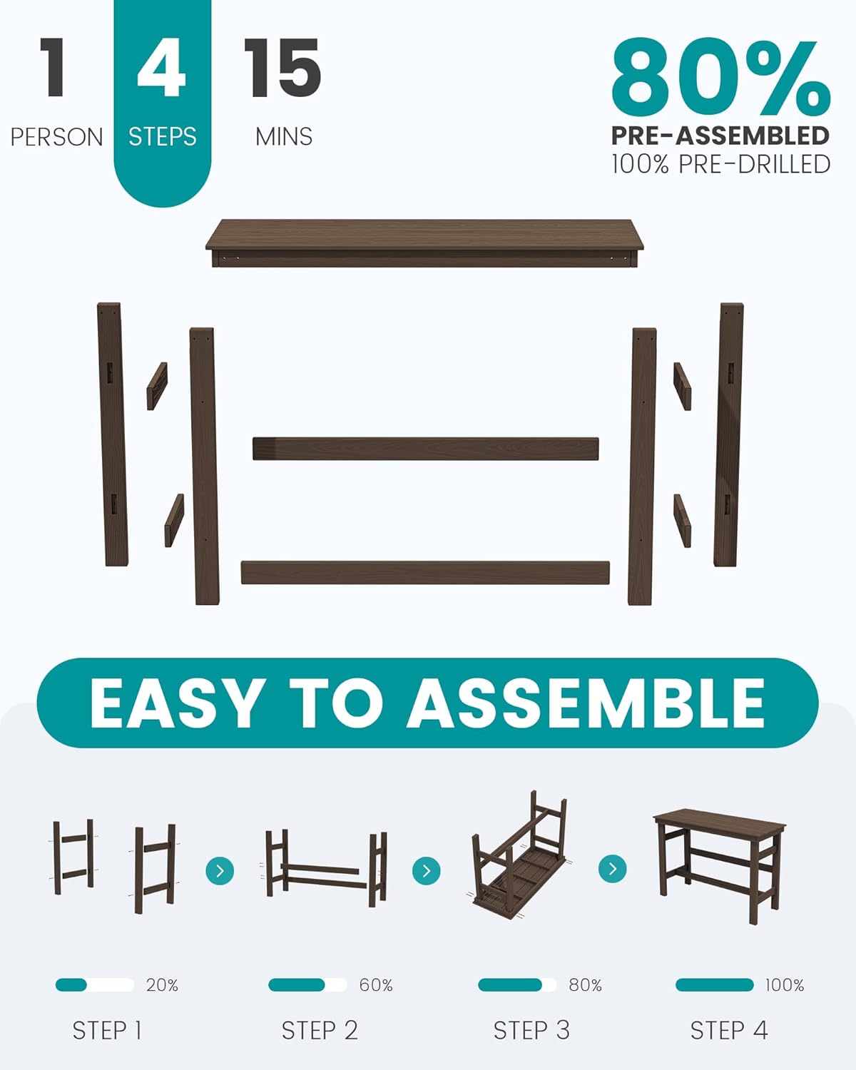 - Maintenance-Free: The outdoor counter height table is engineered for effortless upkeep. It's waterproof and fade-resistant, eliminating the need for painting, staining, or waterproofing. Cleaning is simple—just use soap, water, and a soft bristle brush or sanding sponge.
