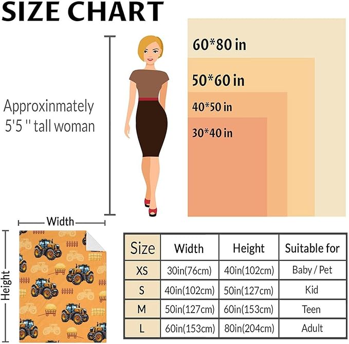 Kids Blanket Tractor Throw for Kids Adults, 60x80 Inches Lightweight Soft Cute Tractor Decor Throw Blankets for Sofa Chair Couch Bed