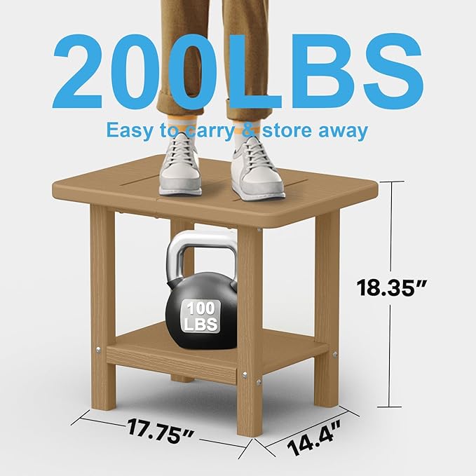 Outdoor Side Table - 2-Tier Storage All Weather Outdoor End Table for Patio - HDPE Morden Easy Maintenance Adirondack Side Table for Pool Porch Balcony Garden Lawn Backyard Outside Indoor