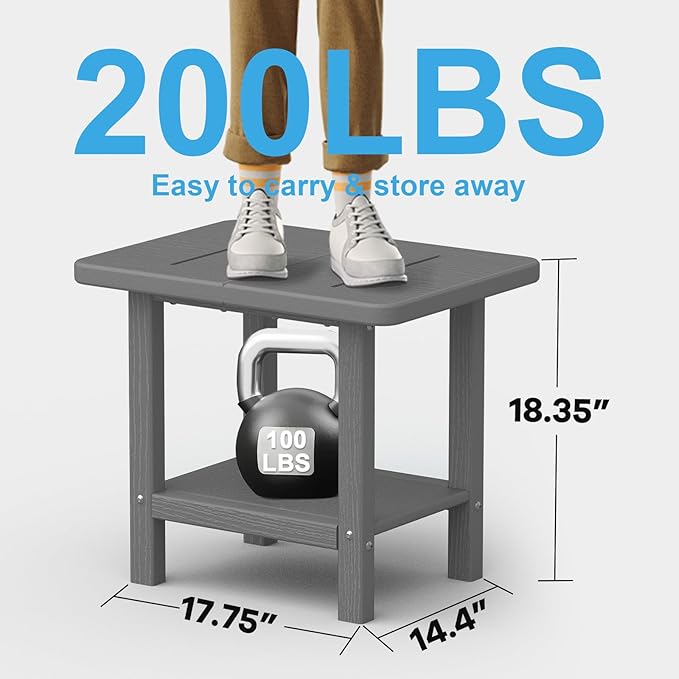 Outdoor Side Table - 2-Tier Storage All Weather Outdoor End Table for Patio - HDPE Morden Easy Maintenance Adirondack Side Table for Pool Porch Balcony Garden Lawn Backyard Outside Indoor