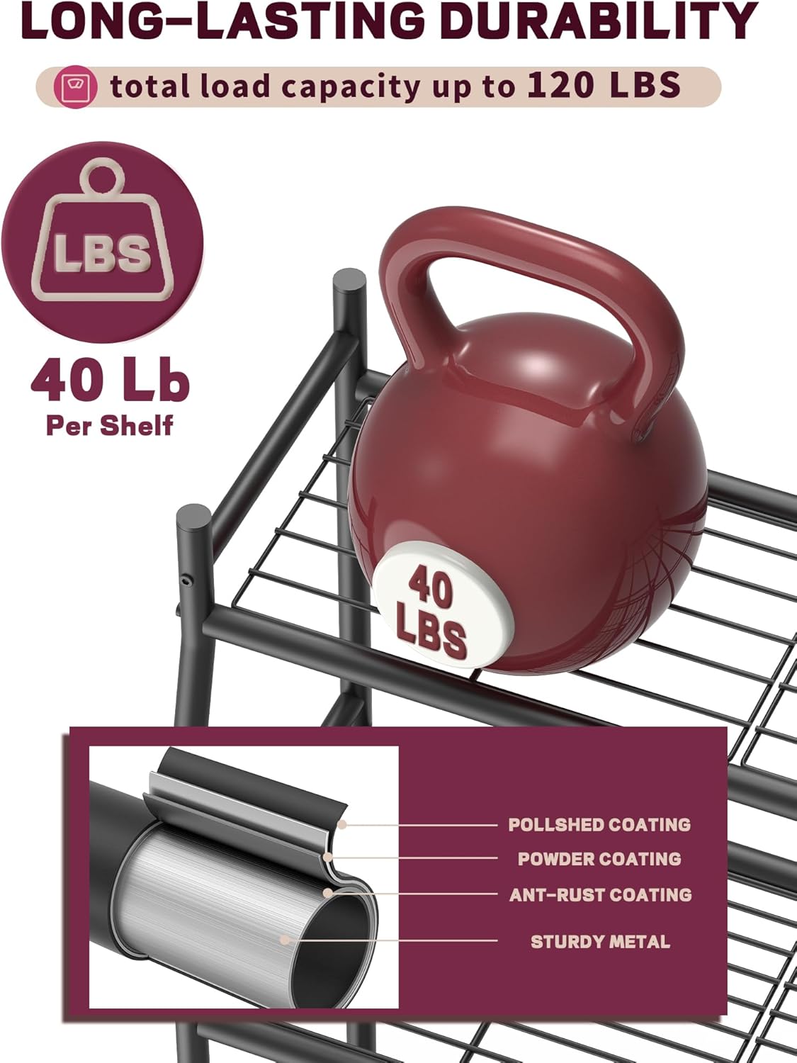 - STRONG CARBON STEEL AND WATERPROOF COATING - Crafted from high-quality carbon steel, the surface is treated with a dense rust-proof coating, which significantly extends the stand's lifespan. It remains in good condition whether used indoors or outdoors.