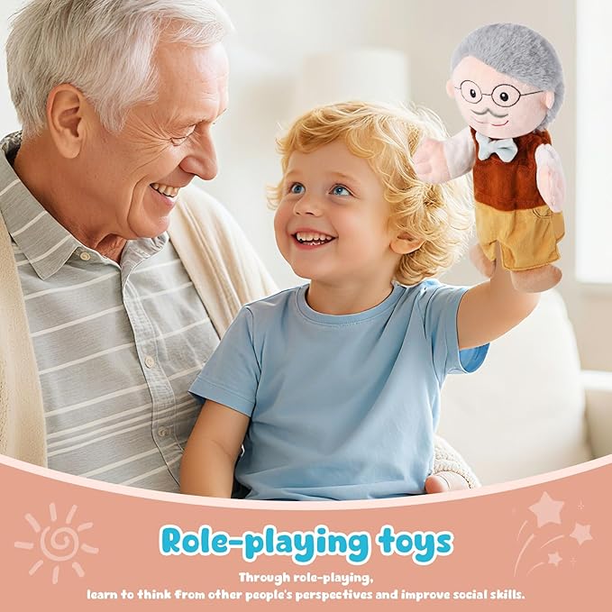 1 Pcs Family Hand Puppets 12 Inch Grandparents, Mom & Dad, Brother & Sister Plush Hand Puppet Toys Role-Play Toy Puppets for Kids Storytelling Imaginative Pretend Play Teaching Preschool(Grandpa A)