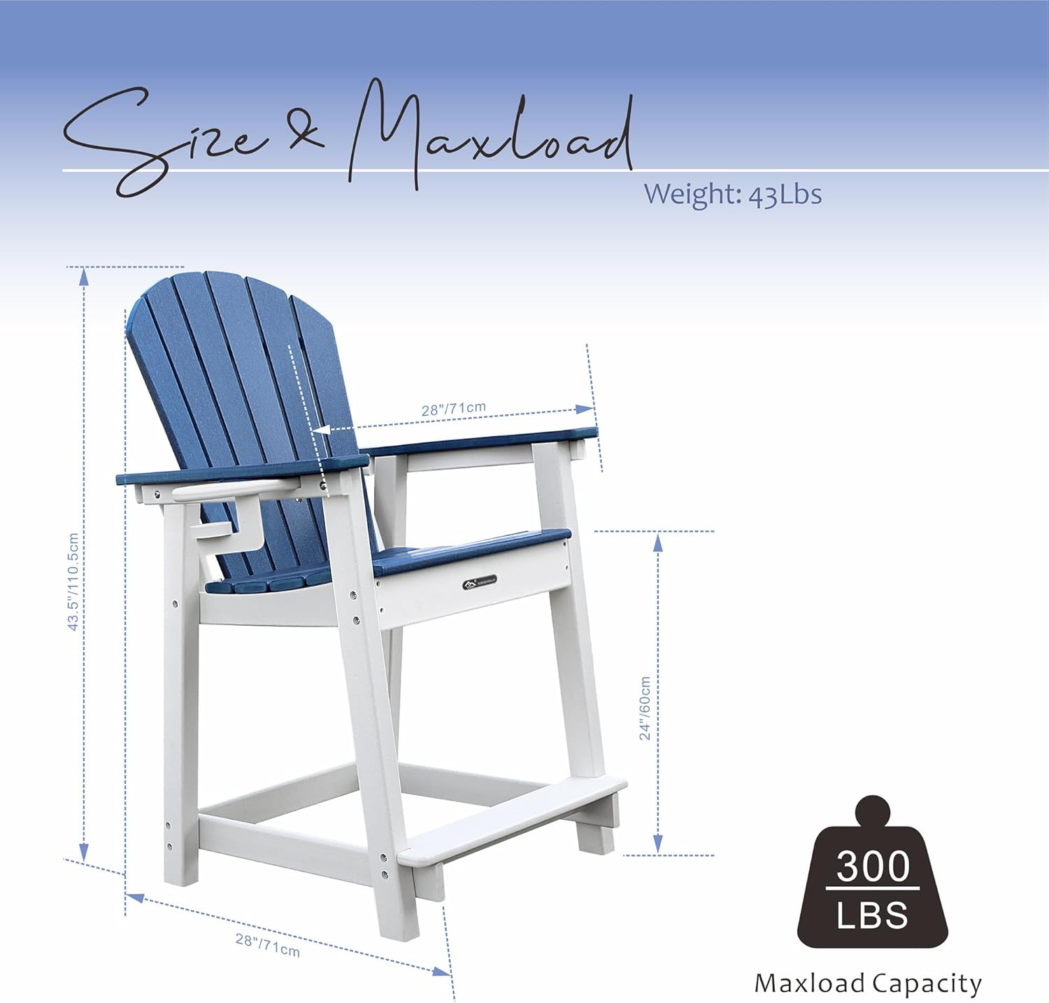 Tall Adirondack Chairs, Adirondack Barstools, Weather Patio Garden Pool Fire Pit Balcony Outdoor Bar Stools HDPE Plastic Barstools with Backs for Garden, Backyard, Yard (Blue)