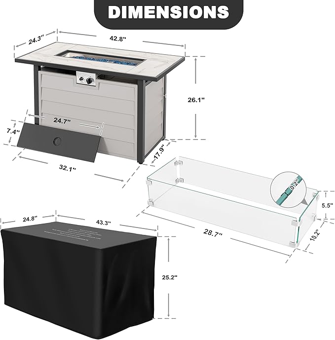 - 2-In-1 Design: Engineered for versatility, the 43'' fire pit can seamlessly transform from outdoor fire pit table to dining table. When not in use, simply close the fire lid to enjoy a beautiful and large marble texture tabletop, perfect for gatherings