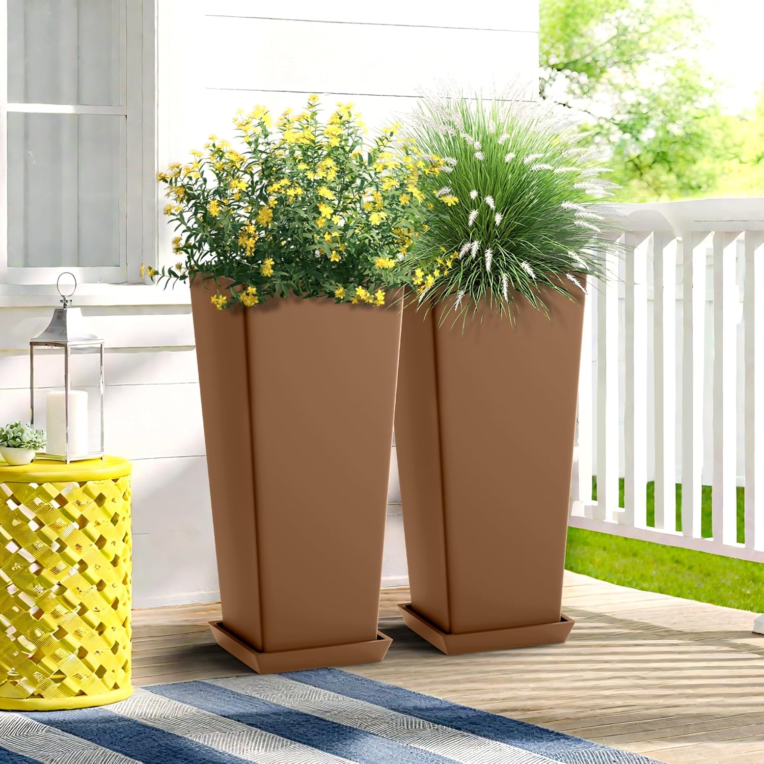- Smart Drainage with Bonus Tray System: Each tall outdoor planter includes a custom-fit drainage tray to promote proper water flow and air circulation, helping to prevent root rot and keep your plants healthy. This makes these planters a great solution for your porch, patio, or any indoor space.