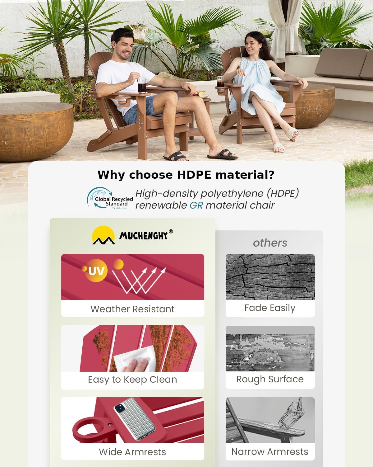 MUCHENGHY Folding Adirondack Chairs Set of 2, Patio Chairs, Lawn Chairs, Outdoor Chairs, Adirondack Chair Plastic, Fire Pit Chairs, Weather Resistant with Cup Holder for Deck, Backyard, Garden(Red)