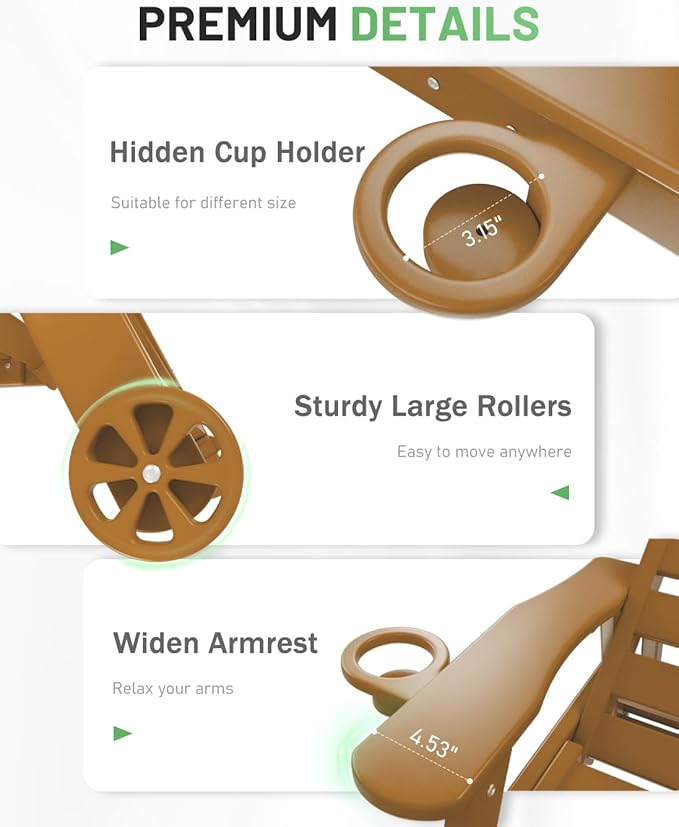 - Premium Suunyn HDPE: The polywood chaise lounge are made from high-density HDPE, which bends slightly under heavy weight or high temperature but returns to its original shape when the weight is removed or the temperature has dropped. This durable material withstands harsh weather and is easy to clean